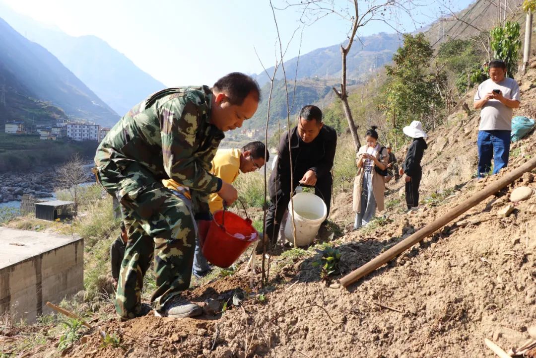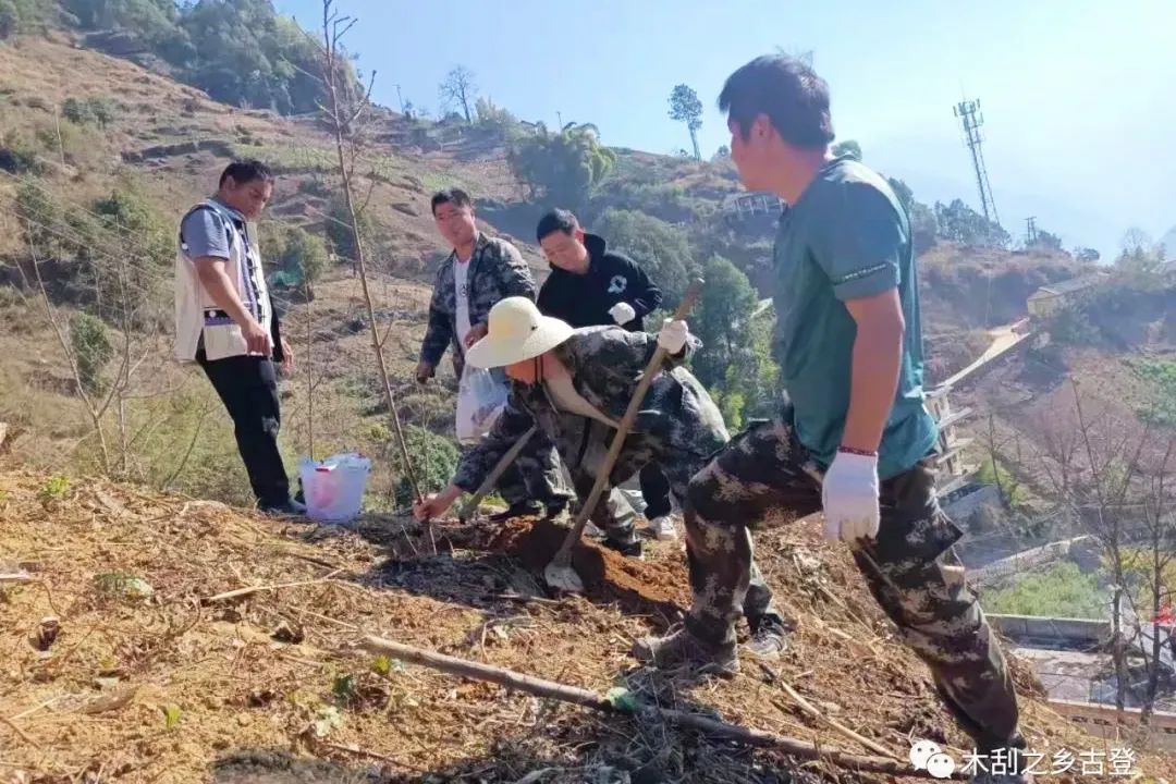 3月11日,古登乡组织机关党政支部、青年人才党支部、农林牧党支部、古登边境派出所党支部、色仲村党支部和周边部分村民约60人,开展主题为“党建引领 人人参与 共建绿色家园”的植树活动。植树现场,党政军警民一起,三五人自由搭组,分工合作,各个环节衔接有序,默契配合。有的定点、放线,有的搬运树苗、有的挥锹铲土、有的扶树压土、有的提水浇灌。大家脚踩泥土,不怕脏不怕累,个个热情高涨,干劲十足,当天共在色仲村委会种植樱桃100余株。