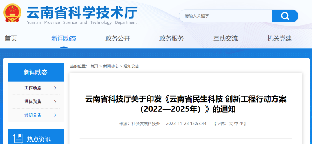 为贯彻落实《云南省“十四五”科技创新规划》,促进以改善民生为重点的社会建设,发挥科技创新的引领和支撑作用,云南省科学技术厅近日印发《云南省民生科技创新工程行动方案(2022—2025年)》(以下简称《行动方案》)。